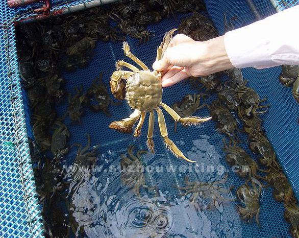 陽澄湖活水性較好,水體清澄,透明度高,平均值為133厘米,含鈣、鎂、硅、鋁氧比值高,這是其一。二是湖底底質(zhì)好,硬地占65%以上,表層多數(shù)呈斑塊狀的粉沙和沙質(zhì)泥。三是水草特別茂盛,它既是蟹爬行的階梯,又可做食料。四是天然飼料豐富,生物量大,螃蟹總是尋找水質(zhì)清晰,陽光透徹,水草茂盛的水域棲息,生活。因此,是陽澄湖這一特定的生態(tài)環(huán)境和湖水中特定理化因子,造就了“蟹中之王”。