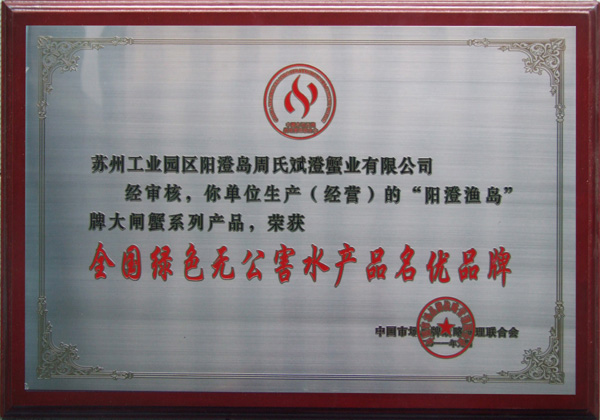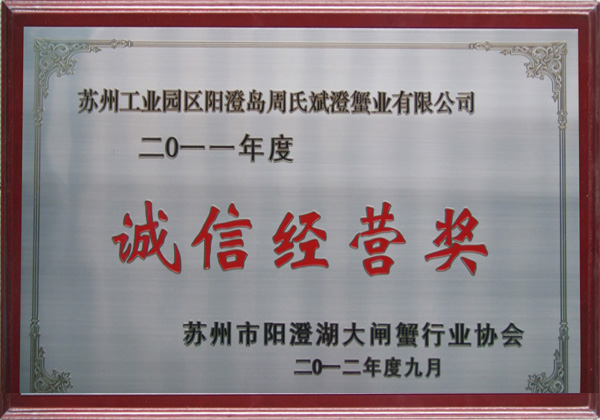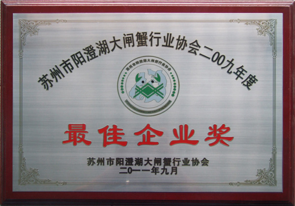 公司先后獲得了“AAA級資信企業(yè)”、“AAA重合同守信用企業(yè)”、“消費(fèi)者滿意單位”、“零投訴單位”等榮譽(yù)稱號。并榮獲了2009年誠信經(jīng)營獎、2010年先進(jìn)個人、2011年誠信經(jīng)營獎、2011年先進(jìn)單位、2012陽澄湖大閘蟹行業(yè)協(xié)會推薦產(chǎn)品、2012年養(yǎng)殖能手獎、2012年產(chǎn)品暢銷獎、2012年最佳企業(yè)獎等諸多獎項(xiàng)。