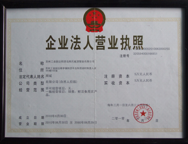 蘇州工業(yè)園區(qū)陽澄島周氏斌澄蟹業(yè)有限公司(shopist.cn)(下稱本公司)系(分), 蘇州唯亭陽澄湖大閘蟹養(yǎng)殖公司地處陽澄湖的中心.蘇州工業(yè)園區(qū)唯亭鎮(zhèn)陽澄湖半島陽澄湖村陽澄人家.依附于獨(dú)特的陽澄湖大閘蟹原產(chǎn)地地理和水質(zhì)優(yōu)勢!主要從事陽澄湖大閘蟹成品蟹的養(yǎng)殖。我養(yǎng)的大閘蟹是天然綠色無公害的螃蟹。我現(xiàn)在就在陽澄湖邊開了家陽澄湖農(nóng)家樂飯店!水上漁家樂】【水邊農(nóng)家樂】我真心的邀請新老朋友來買蟹、品農(nóng)家菜。陽澄湖大閘蟹銷售、餐飲、組織陽澄湖一日游等…… 一條龍服務(wù) 。