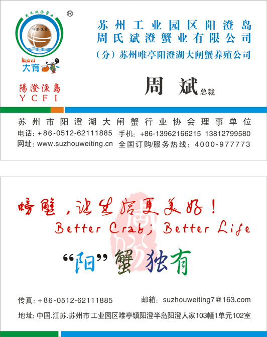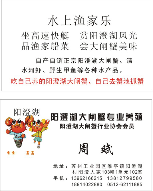 “陽澄漁島”牌大閘蟹無公害有機食品養(yǎng)殖基地位于蘇州陽澄湖,為蘇州工業(yè)園區(qū)陽澄島周氏斌澄蟹業(yè)有限公司建立。坐落在優(yōu)美的陽澄湖畔,占有272公頃優(yōu)質(zhì)水域,2005年被國家認定為“全國水產(chǎn)行業(yè)質(zhì)量放心國家標準合格產(chǎn)品”,2006年獲得中國“有機食品”認證證書,并先后獲得陽澄湖大閘蟹行業(yè)理事會員、重合同守信用企業(yè)、十佳企業(yè)等榮譽稱號。陽澄湖村也被國家農(nóng)業(yè)部授予“中國陽澄湖清水大閘蟹之鄉(xiāng)”稱號。
