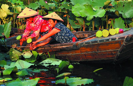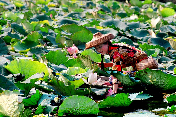 漁舟采蓮﹕鄉(xiāng)下村姑、鄉(xiāng)村美女、帥哥,農(nóng)民伯伯,乏舟出湖,采摘蓮藕,
