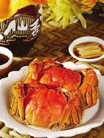 但吃蟹作為一種閑情逸致的文化享受,卻是從魏晉時期開始的!妒勒f新語.任誕》記載,晉畢卓(字茂世)嗜酒,間說:“右手持酒杯,左手持蟹螯,拍浮酒船中,便足了一生矣。”這種人生觀、飲食觀影響許多人。從此,人們把吃蟹、飲酒、賞菊、賦詩,作為金秋的風流韻事,而且漸漸發(fā)展為聚集親朋好友,有說有笑地一起吃蟹,這就是“螃蟹宴”了。